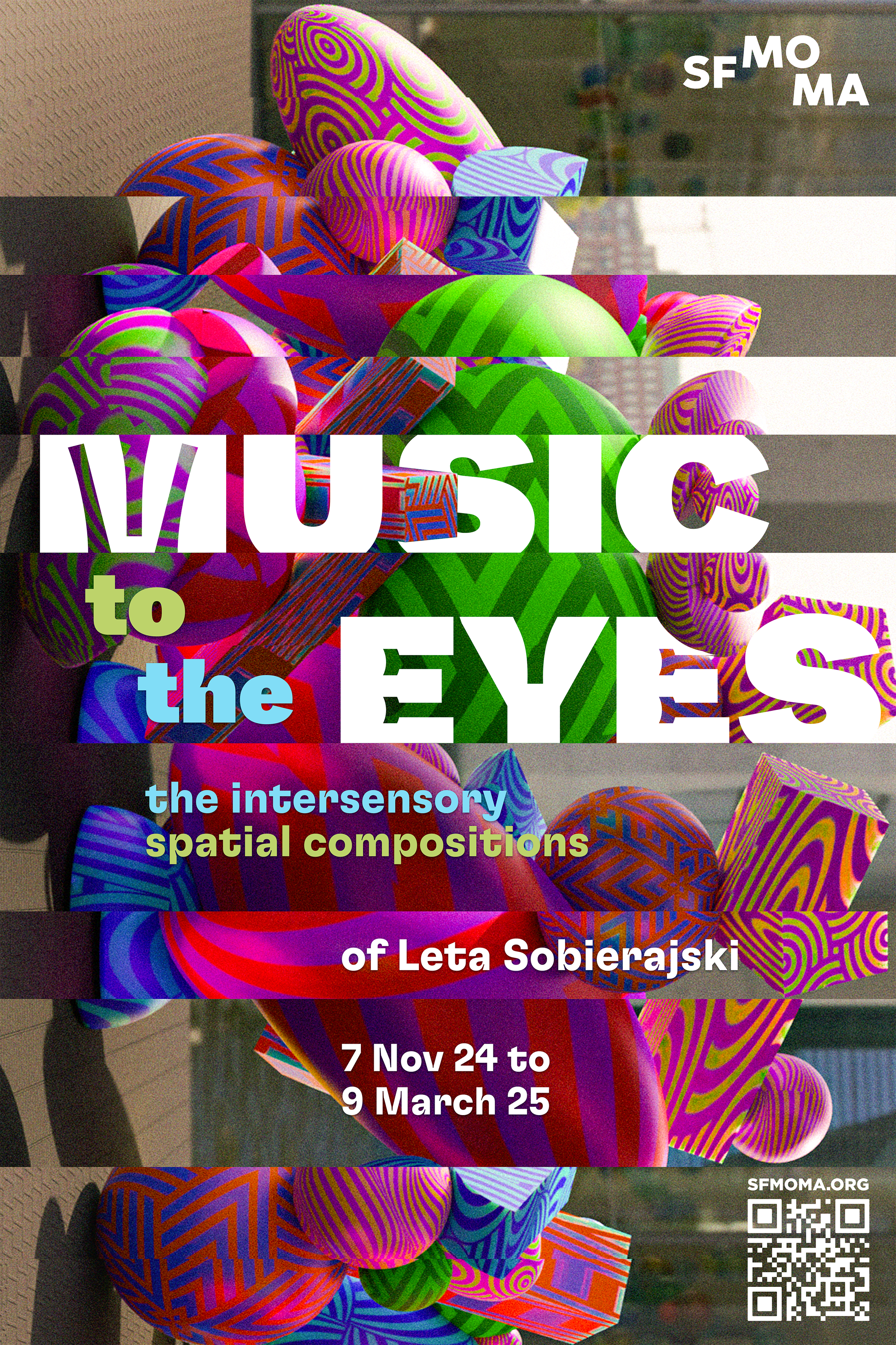 The final visual was crafted by cutting renders of the sculpture from several camera angles into strips and rearranging them into an abstract composition. The title and supplementary information, carefully integrated into the composition, are set in Dinamo Typeface’s ABC Whyte Inktrap and Grilli Type’s GT Flexa respectively, both chosen for being fonts that stand out from most sans-serif faces due to their non-standard apertures.
